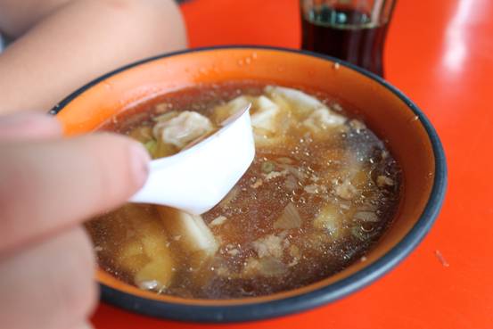 又上了一碗餛飩湯,感覺醬油為比較重。