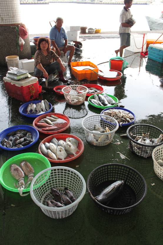 老闆吆喝,我沒有想要買魚,想看看有哪一些魚貨?